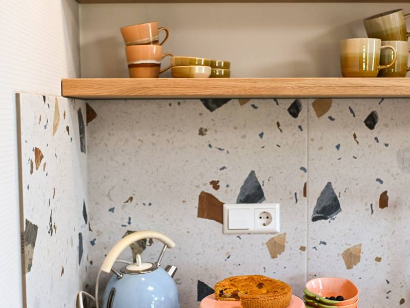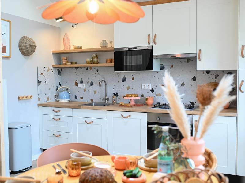 - De keuken is voorzien van 4-pits gaskookplaat, vaatwasser, koelkast, oven, magnetron, waterkoker en Nespresso-apparaat