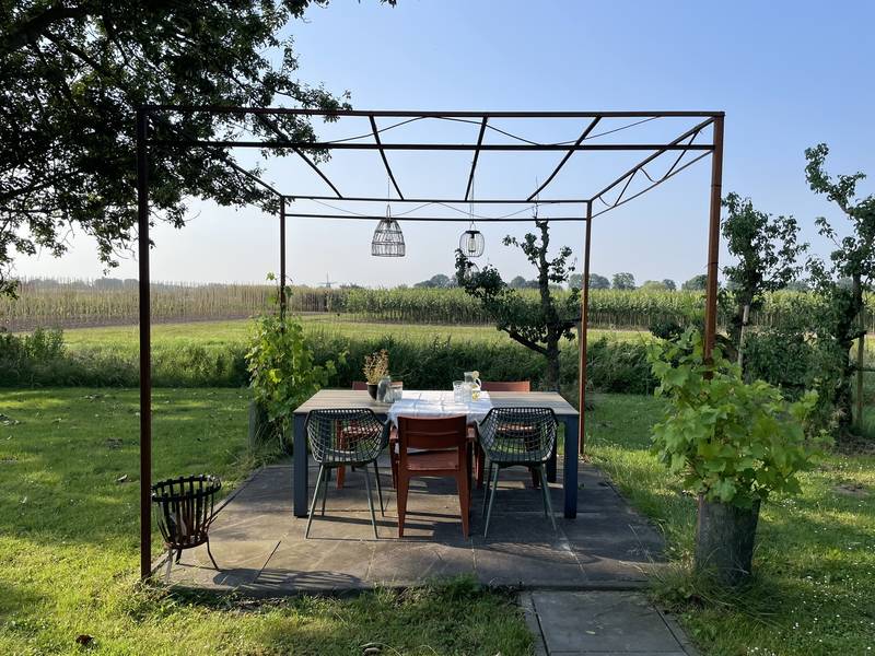 De grote buitenruimte die om dit huisje zit, is ook echt uniek voor een vakantiehuisje. Er is zelfs een heus Frans druiven-afdak!