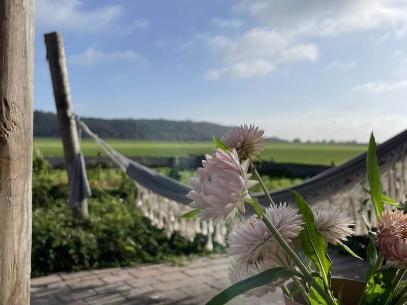 Zoals op bovenstaande foto te zien is, heeft dit huisje heeft echt een uniek uitzicht: over de weilanden van de buurman heen kijk je op de Grebbeberg!!