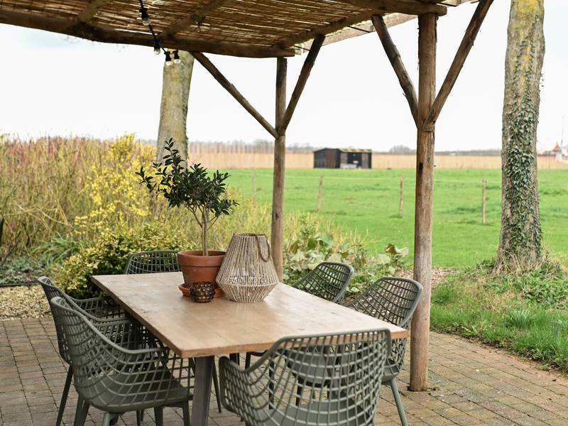 De overkapping heeft een mooi uitzicht over de weilanden en Rhenen. (zoals te zien is op bovenstaande foto) Deze rust, gecombineerd met o.a. de BBQ buiten zorgt voor het buitenleven-gevoel. Het speeltuintje met zandbak, schommels en glijbaan zitten bij de Peppel heel dichtbij dus ideaal met kinderen.