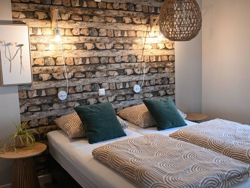 - Een slaapkamer met 2x1 persoons boxspring (80x200)