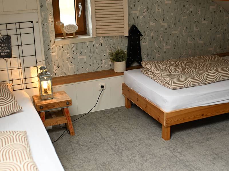 - Eén slaapkamer is een knus slaap-en speelzoldertje met 2x1 persoons bedden