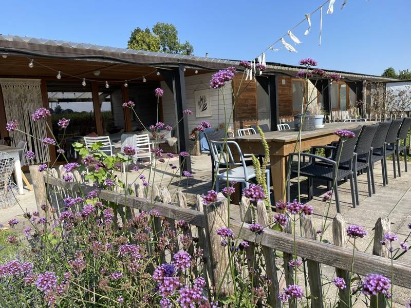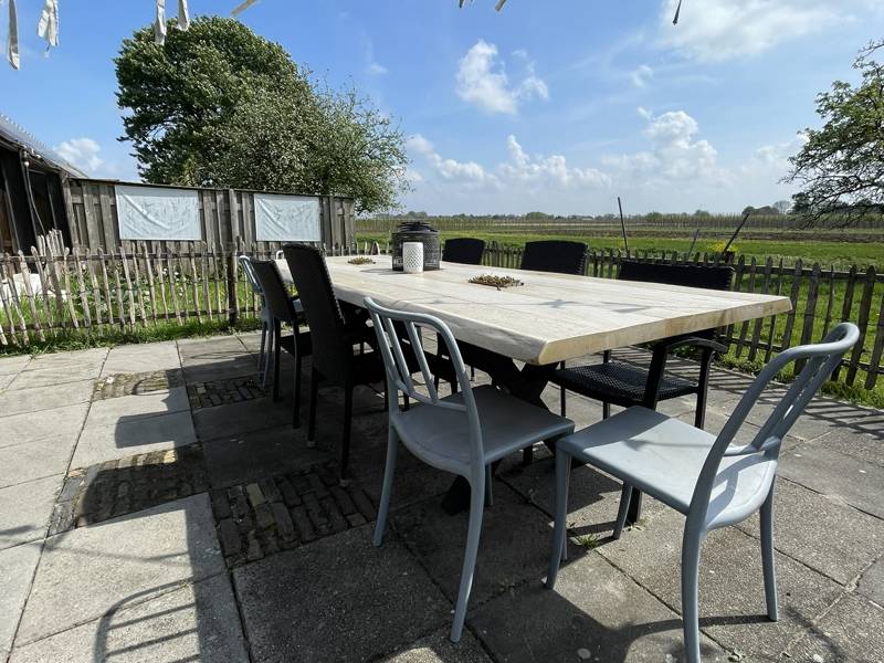 Er is een overdekt terras op het zuiden waar jullie al vroeg in het voorjaar en laat in de zomer kunnen genieten van het zonnetje. Hier kunnen jullie ook lekker barbecueën op de aanwezig BBQ. (houtskool zelf mee te nemen)