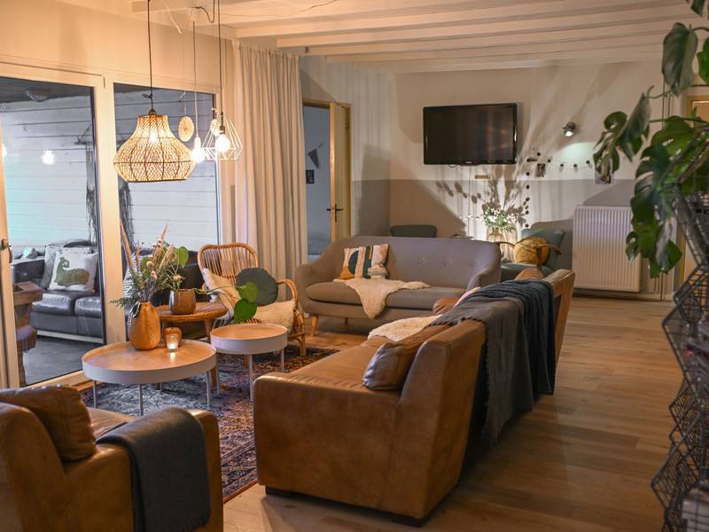 - Er is een woonkamer met een grote pui op het zuiden en een mooi landelijk uitzicht