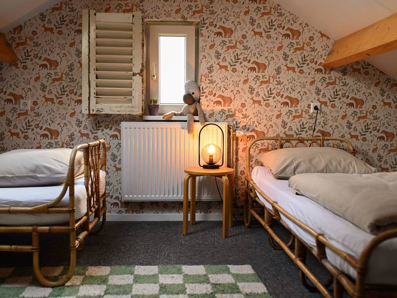 - Eén slaapkamer (op het zoldertje) met 2x1 persoons bedden