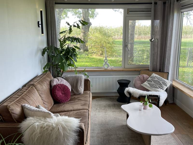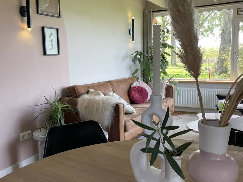 De Meidoorn is een fijn huisje op de hoek (van onze vier-op-een-rij). Dus extra veel ruimte en privacy om dit huisje heen. Dit huisje is geschikt voor max. 4 personen (bij voorkeur 2 volwassenen, 2 kinderen). Door de houten vloer, veel zwarte accenten gecombineerd met warm roze is dit huisje stoer&zacht.