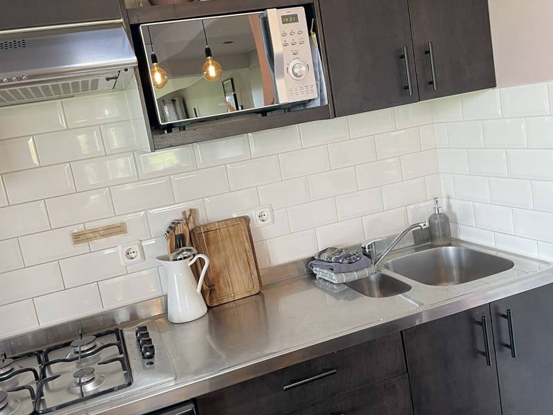 - De keuken is voorzien van 4pits gaskookplaat, koelkast, combimagnetron, Nespresso-apparaat en fluitketeltje (startvoorraadje cups en theezakjes aanwezig)
