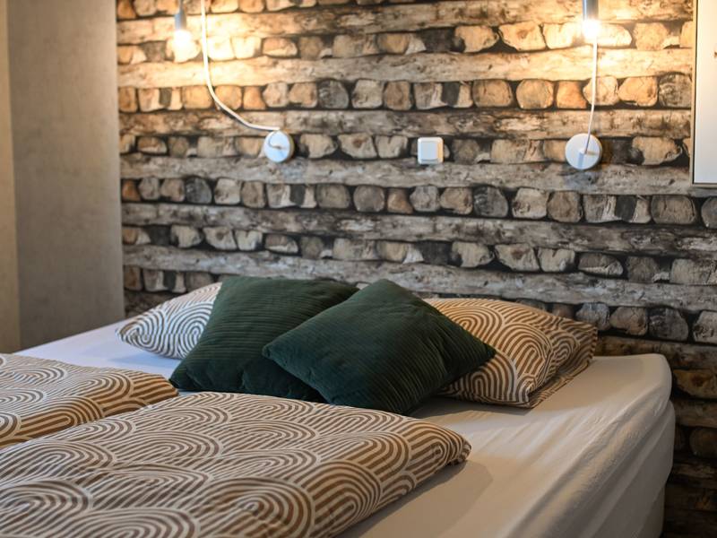 - Een slaapkamer met 2x1 persoons boxspring (80x200)