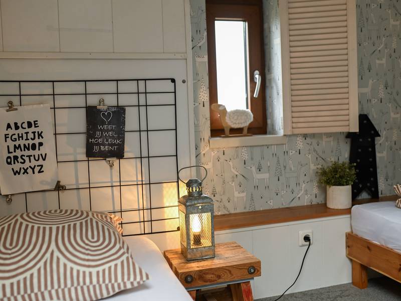 - Eén slaapkamer is een knus slaap-en speelzoldertje met 2x1 persoons bedden